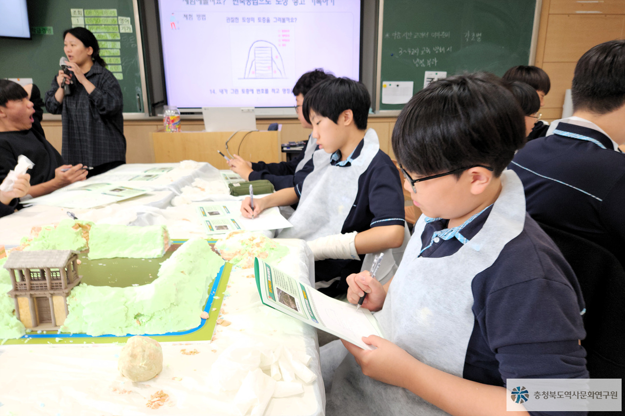 - 사업명 : 2025년 지역 국가유산교육 활성화 사업 '탐나는 청주' - 회차, 프로그램명 : 28차, 손잡고 나와 함께, 백제와 함께 - 일시 : 25.11.7.(금) 10:40~12:20 - 대상 : 청주남중학교 1학년 22명(담당교사 포함)