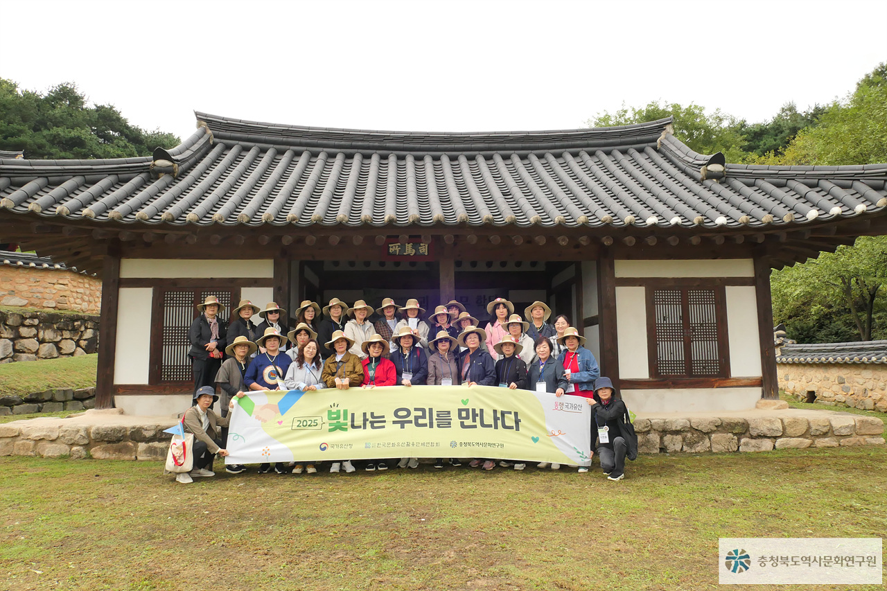 - 사업명 : 2025 동행, 국가유산 '빛나는 우리를 만나다' - 회차, 프로그램명 : 11차, 국가유산 따라 이어지는 길 - 일시 : 2025년 10월 18일(토) 09:00~16:00 - 대상 : 제천시가족센터 29명 - 장소 : 충청북도 괴산군 일원(괴산 청안동헌, 괴산 청안향교, 괴산 청안사마소, 충청북도아쿠아리움 등)